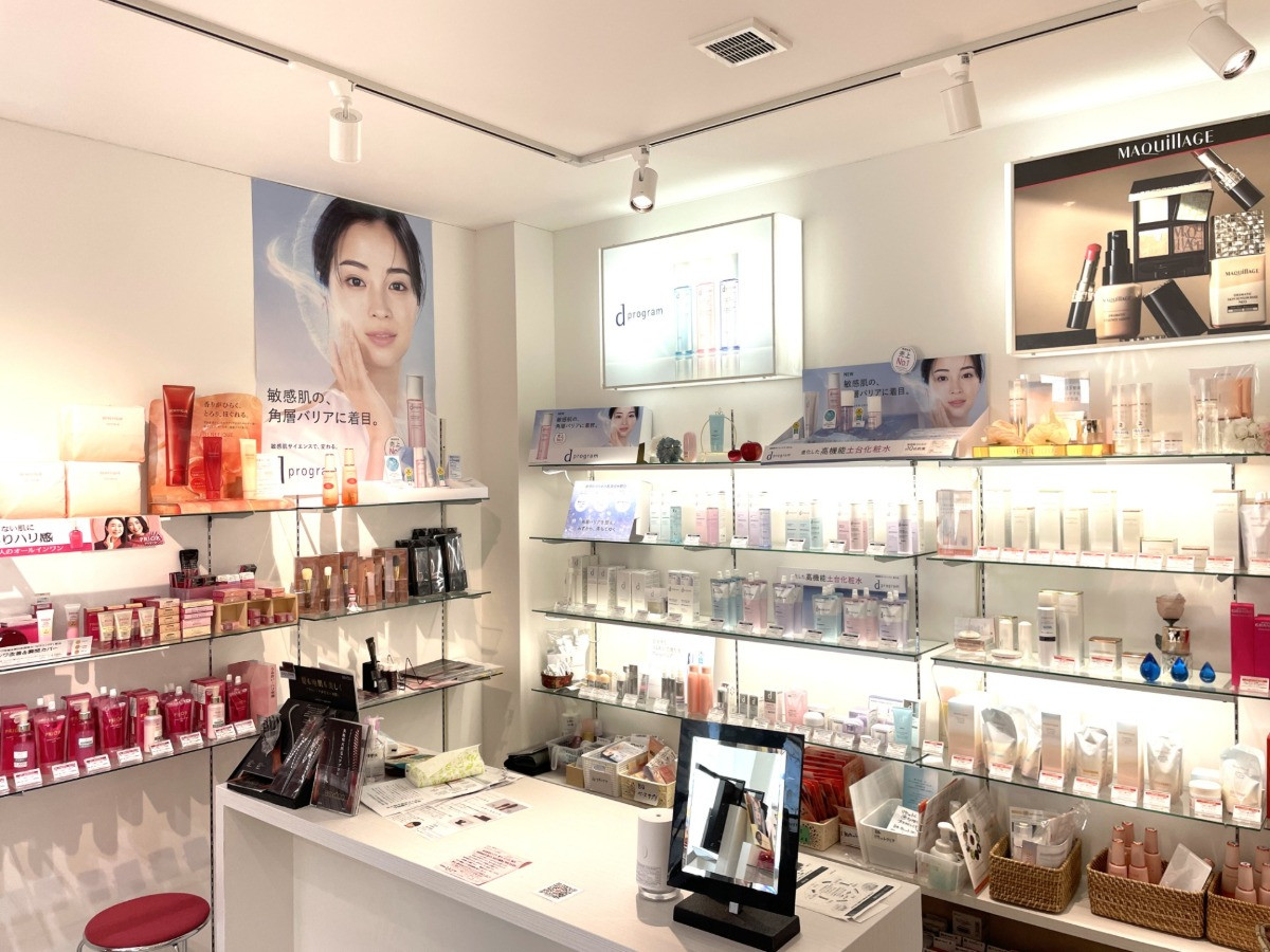 | 商品・サービス | ・取扱メーカー 資生堂 ベネフィーク INOUI(インウィ) アルビオン IGNIS(イグニス) エレガンス プレディア 香椎化粧品(カシー) ヒノキ肌粧品 ハリウッド クレドナチュール エレガンスラズル ウエダ美粧堂 男性化粧品 海外フレグランス ・エステ |