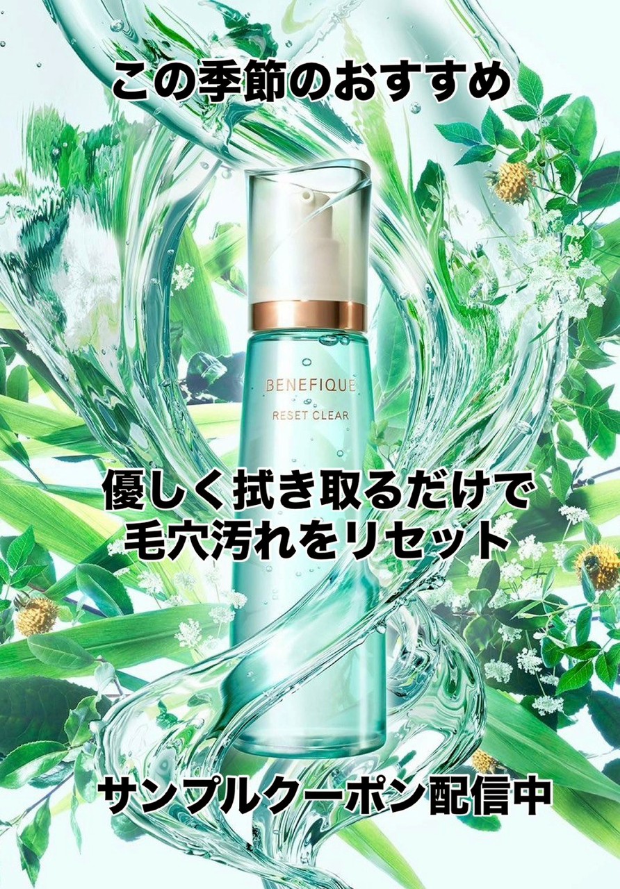 ベネフィークのふきとり化粧液”リセットクリアN”は、不要な角質や皮脂をやさしく拭き取り、なめらかで明るい肌へと導いてくれます✨️